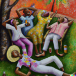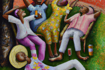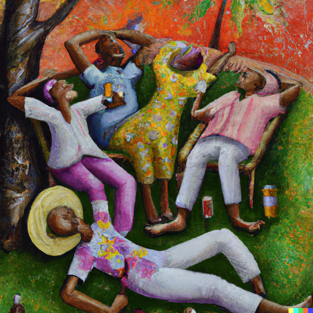 DALL·E 2022-08-14 18.59.58 – an oil painting of people celebrating the day by relaxing and being lazy