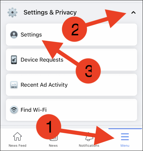 Open the Facebook app on your iPhone, iPad, or Android and then select the three-line “Menu” button in the bottom-right (on the iPhone and iPad) or top-right (on Android) corner. From there, expand the “Settings & Privacy” option and tap “Settings.”