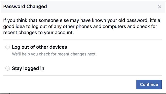When you’ve got a strong password, click “Save Changes.” You’ll be asked if you want to stay logged in on all your other devices. If you think your account has been hacked, select “Log Out of Other Devices.” Otherwise, you’re okay to go with “Stay Logged In.”
