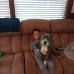 - This is Carter and our dog, Thumper. They are great buddies and love each other very much. Today Carter told her she was a pretty girl and she rewarded him with lots of tail wags.